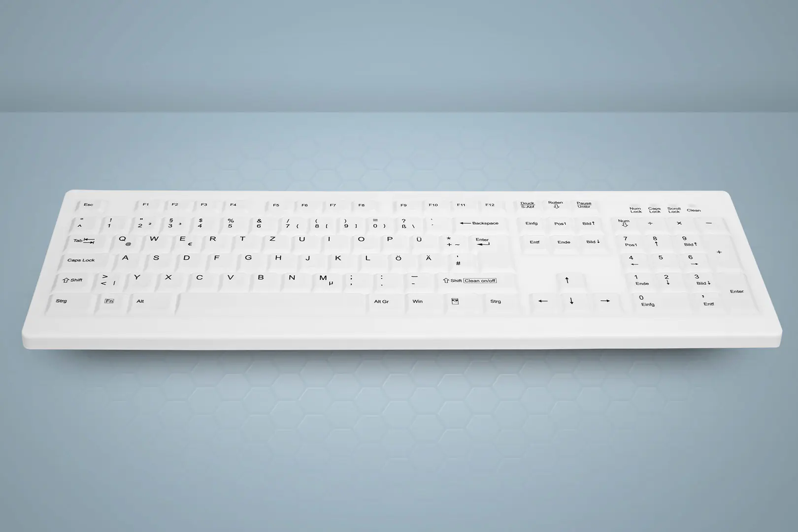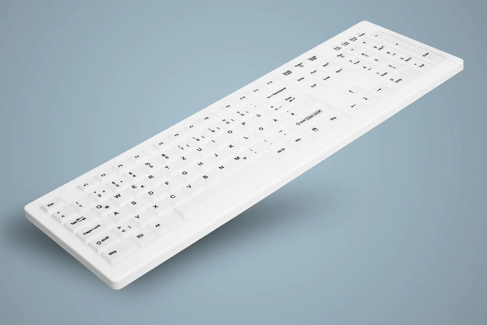 - Geschlossene Tastenmembran aus Silikon ermöglicht Rundumschutz vor Schmutz und Spritzwasser