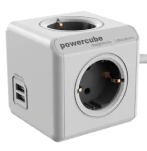 Allocacoc PowerCube extended usb - Stromverteilungseinheit - Wechselstrom 220-240 V - Ausgangsanschlüsse: 4 (CEE 7/4) - 1.5 m Schnur - Deutschland - Trolley Gray