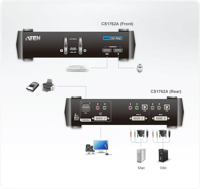 Produktbeschreibung | ATEN CubiQ CS1762A - KVM-/Audio-Switch - 2 Anschlüsse | |||