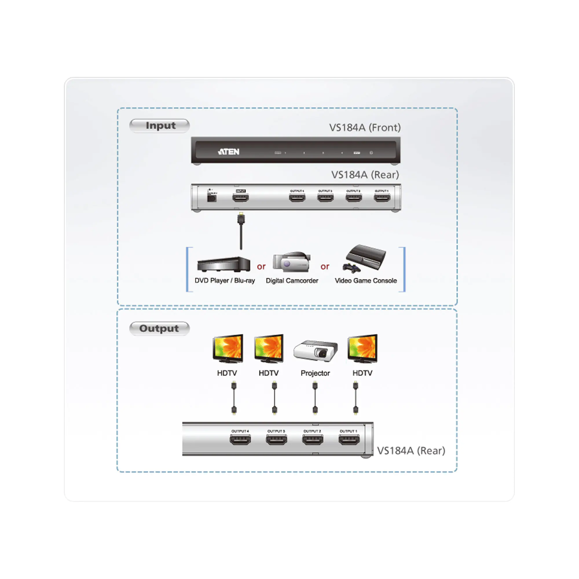 ATEN VS184A - Video-/Audio-Splitter - 4 x HDMI - Desktop