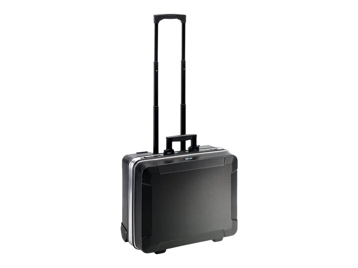 - Mobiler Werkzeugkoffer aus ABS-Material mit anwendungsfreundlichem Teleskopgriff und 2 Inline-Rollen