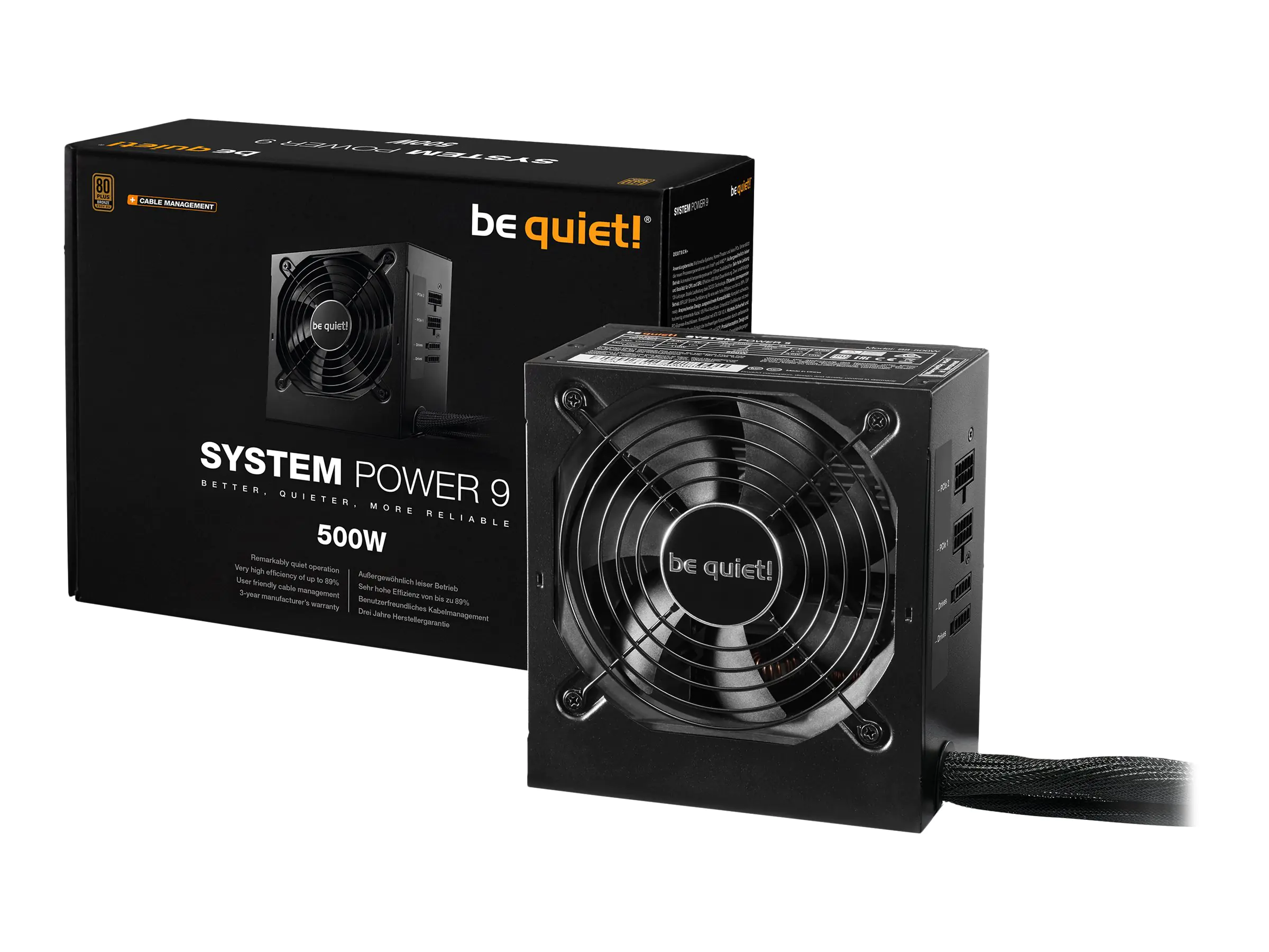 be quiet! System Power 9 500W CM - Netzteil (intern) - ATX12V 2.51 - 80 PLUS Bronze - Wechselstrom 200-240 V - 500 Watt - aktive PFC - Europa