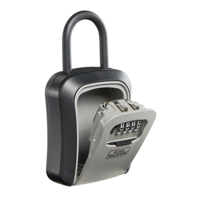 Der KeySafe 50 von BURG-WÄCHTER bietet eine sichere Aufbewahrungsmöglichkeit für Schlüssel sowie für andere kleinere Wertgegenstände. Der Schlüsseltresor bietet einen einfachen und zentralen Zugriff für wechselnde Personengruppen wie z.B. Handwerker, Pflegedienste, Service-Dienstleister, Feriengäste oder für den Fahrzeugverleih. Dank des praktischen, integrierten Schlüsselhakens oder des magnetischen Schlüsselhalters können Schlüssel ganz einfach verstaut werden. Der Key Safe 50 verfügt über eine verschiebbare Schutzklappe und einen abnehmbaren, hochwertig ummantelten Bügel. (Bügelstärke: 9,5 mm, Bügelweite: 40 mm, Bügelhöhe: 50 mm). Der Korpus besteht aus einem sehr widerstandsfähigen Material, um Ihre Schlüssel zuverlässig vor Diebstahl zu bewahren. Sie können Ihren persönlichen vierstelligen Zugangscode aus 10.000 freien und zurücksetzbaren Kombinationen wählen und einstellen. Beachten Sie, dass es nach dem Schließen des Oberteils notwendig ist, die Zahlenräder zu verstellen. Noch nie war es so einfach, Schlüssel sicher und zentral zu verwalten wie mit dem Schlüsseltresor Key Safe von BURG-WÄCHTER.