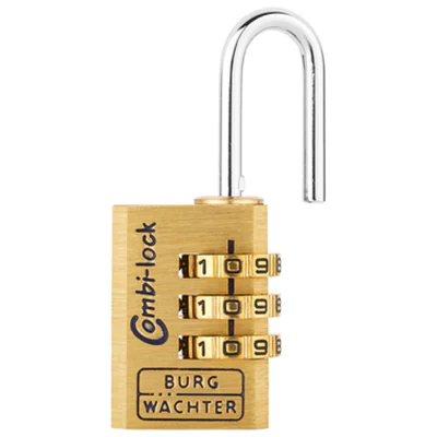 Dieses praktische Modell aus der BURG-WÄCHTER Combi Lock Serie ist ausgestattet mit einem besonders robusten Korpus. Dieser besteht aus massivem Messing und schützt das integrierte Zahlen-Kombinationsschloss. Mit 3 Zahlenrollen.