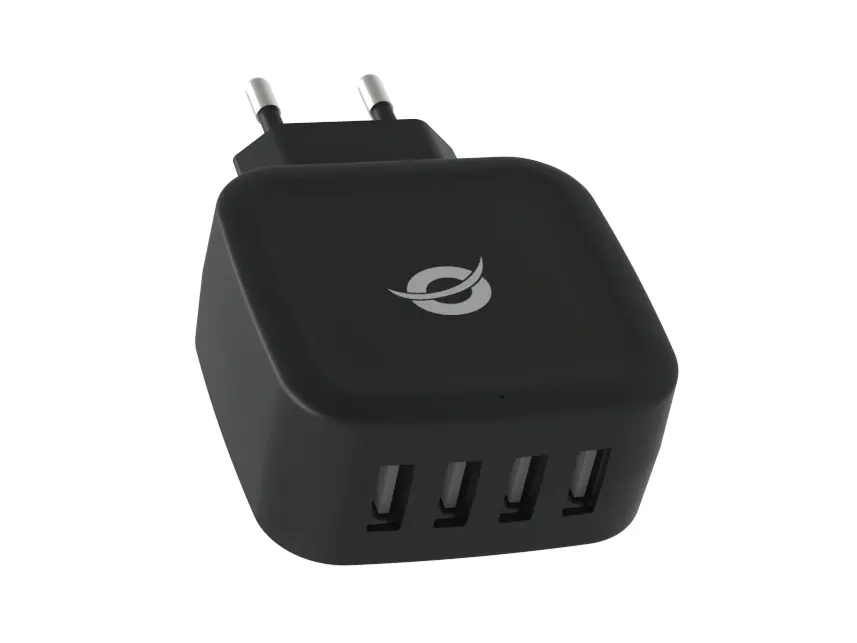Dieses 4-Port-USB-Ladegerät ist die ideale Lösung zum Aufladen eines Tablets sowie der meisten anderen Geräte mit USB-Schnittstelle. Durch direktes Anschließen an eine Steckdose kann das 4-Port-USB-Ladegerät Spannungen von 110 bis 240 Volt Wechselspannung aufnehmen und wandelt diese automatisch in die von USB-Geräten genutzten 5 Volt Gleichspannung um. Neben Smartphones und Tablets unterstützt das Ladegerät viele weitere Geräte, wie Navigationssysteme, MP3-Player und Digitalkameras. Dank der hohen Ausgangsleistung und der 4 USB-Ports kann das vielseitige 4-Port-USB-Ladegerät von Conceptronic vier Geräte gleichzeitig aufladen. Ein absolutes Muss für Heim, Büro oder auf Reisen.