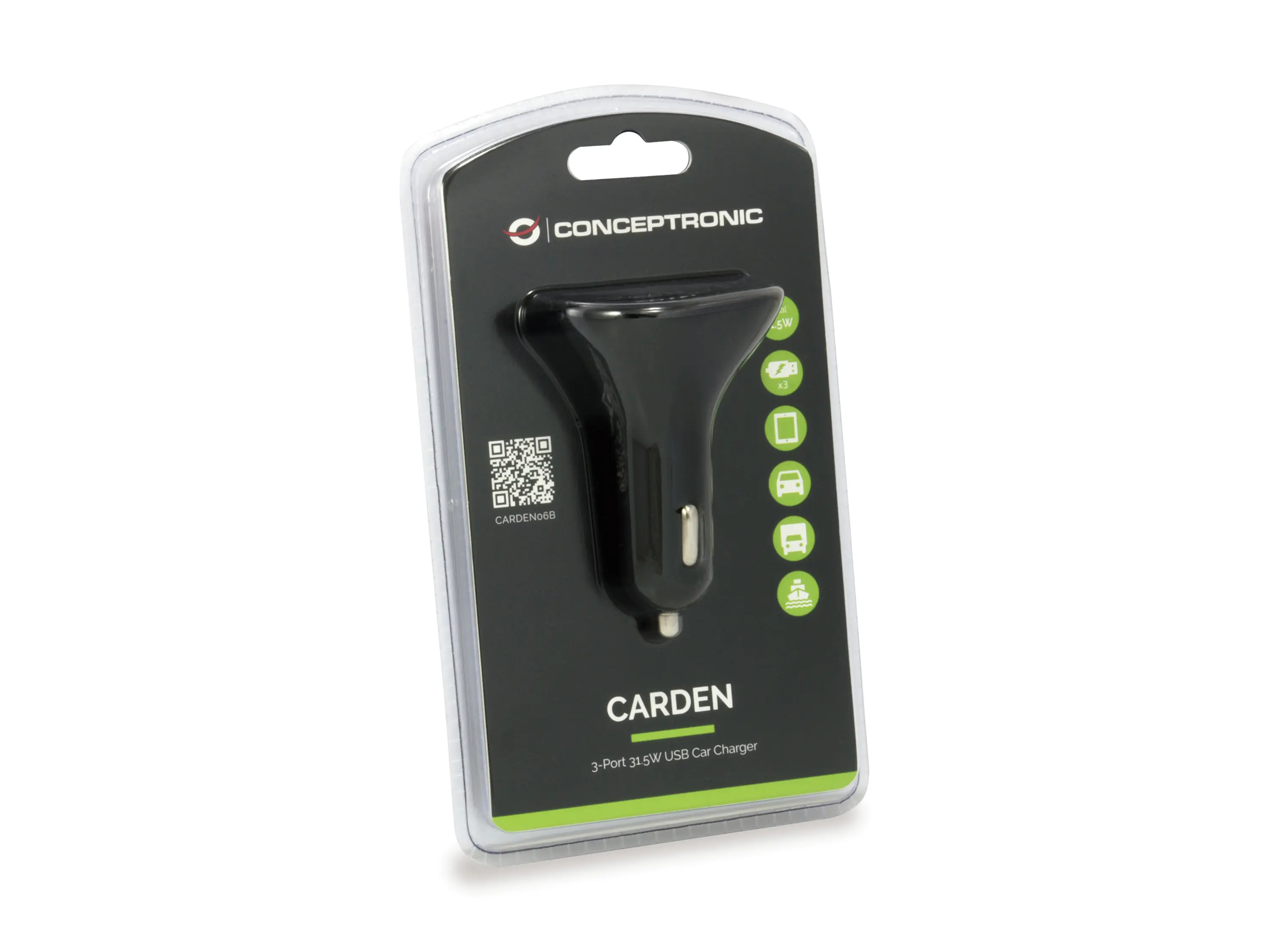 Conceptronic CARDEN - Auto-Netzteil - 31.5 Watt - 6.3 A - 3 Ausgabeanschlussstellen (USB)