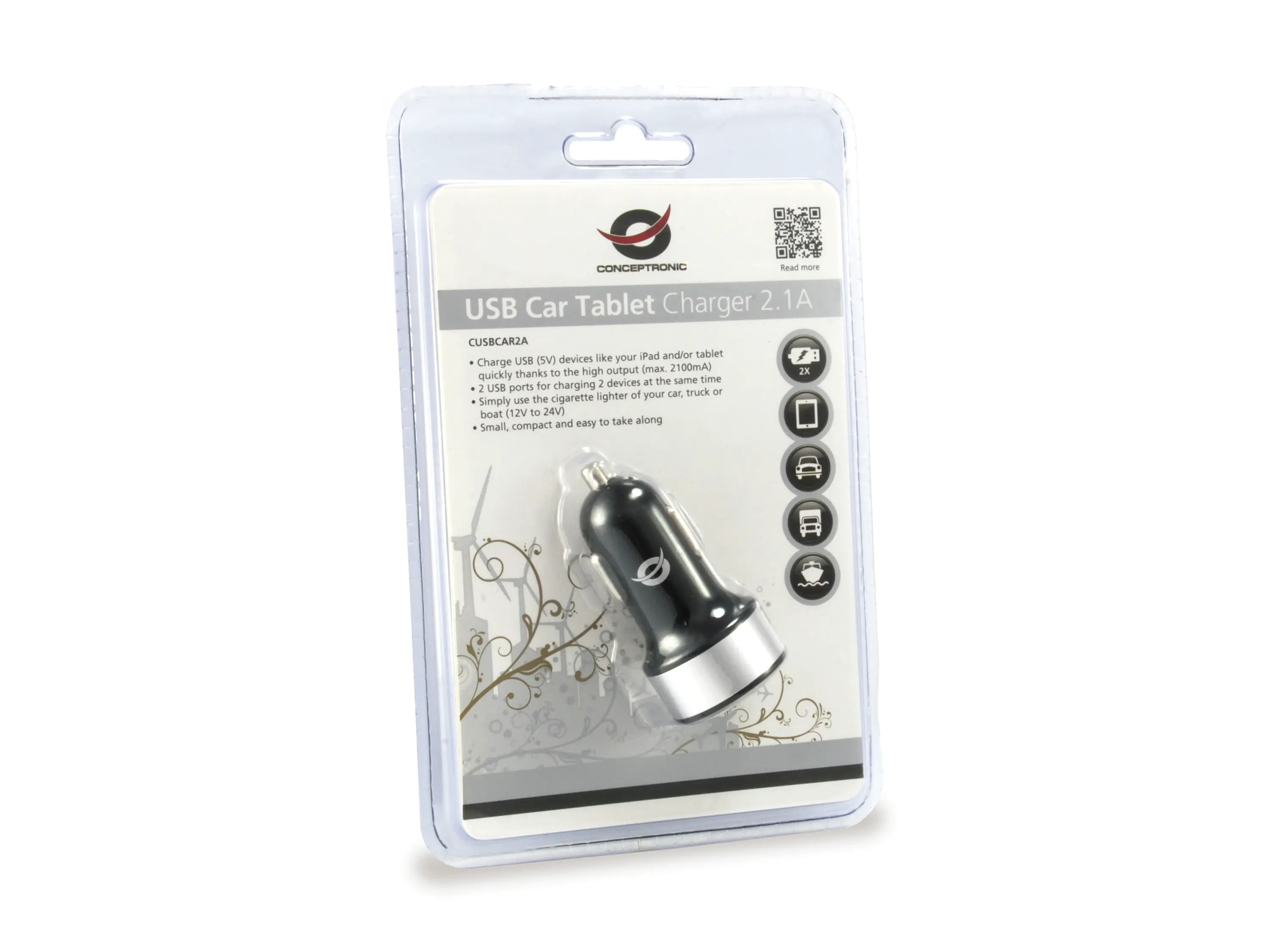| Conceptronic CUSBCAR2A USB Car Tablet Charger 2A - Auto-Netzteil - 2 A - 2 Ausgabeanschlussstellen (USB) | ||||