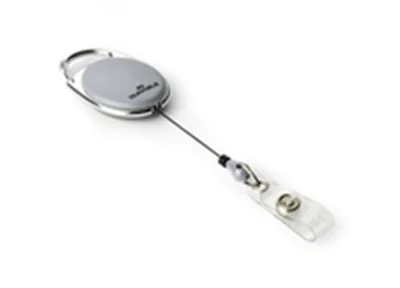 Ovales Jojo in ansprechendem Design. Mit Metallclip-Befestigung und Druckknopf-Schlaufe zur einfachen Kombination mit allen DURABLE-Namensschildern oder Sicherheitsausweishaltern, die über eine Clip-Ausstanzung oder Nadel verfügen.