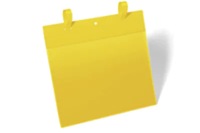 Gitterboxtasche mit pfeilförmigen Laschen zur Befestigung in Klemmschlitzen. Ideal für den dauerhaften Einsatz an Lager- und Transportboxen. Extrem starker Halt an beweglichen Transportbehältern wie z.B. Gitterboxen. Kein Herunterfallen der Tasche bei starken Erschütterungen. Schutzklappe schützt Dokumente vor Staub und Feuchtigkeit.