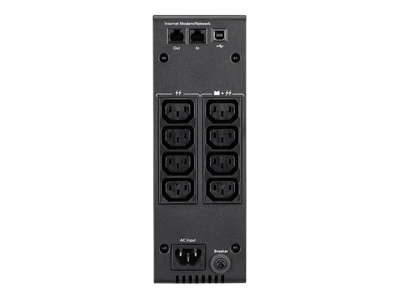 | Ausgabeanschlussstellen | 4 x Strom IEC 60320 C13 (Überspannung) ¦ 4 x Strom IEC 60320 C13 (USV und Überspannung) | |||