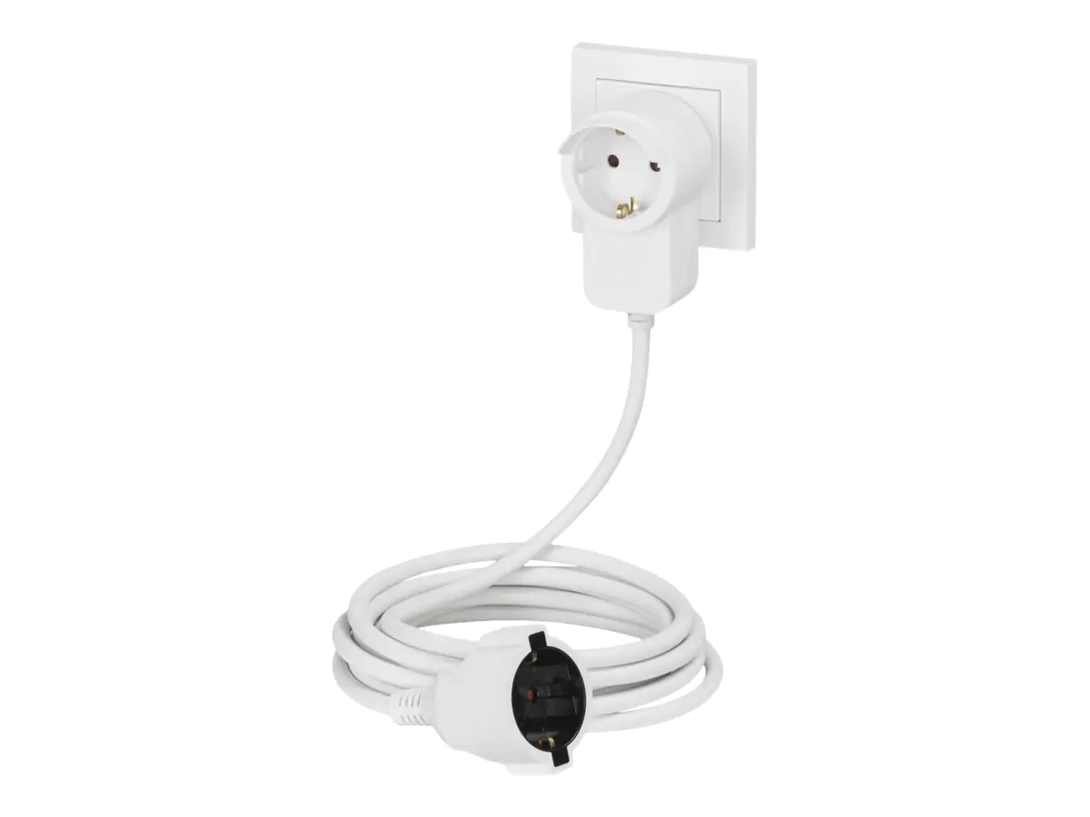 - Verlängerungskabel mit Schutzkontakt-Stecker mit integrierter Schutzkontakt-Steckdose und Schutzkontakt-Kupplung zum Verlängern von Anschlussleitungen, z.B. von Haushaltsgeräten, Bürogeräten oder Werkzeugen