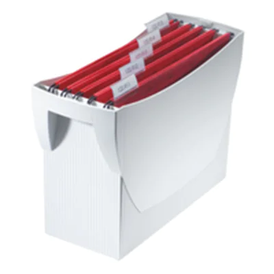 - Großes Volumen, aber raumsparend - integrierter Köcher für Stifte und Marker - passend für 20 Hängemappen oder 3 Ordner (A4 50 mm breit) - ideale Handhabung durch praktische Tragegriffe
