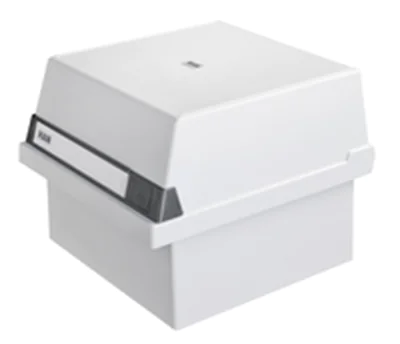 Das Unterteil kann platzsparend in den abnehmbaren Deckel gestellt werden, optimales Beschriftungsfeld, möbelschonende Kautschukfüßchen, verschiebbare Sichtreiter.