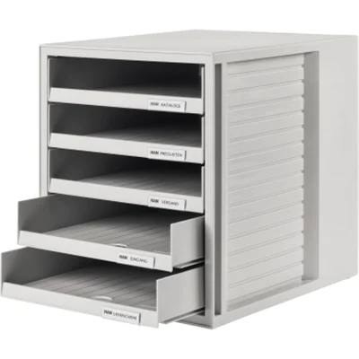 HAN Schubladenbox 1401-11 DIN A4 5Schubfächer PS lichtgrau/lichtgrau