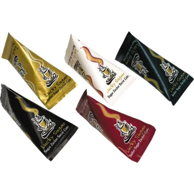 Zucker Lucky Sugar "Hot Cup". In Tetraederform. Im Displaykarton. Sortiert in 5 verschiedenen Motiven.