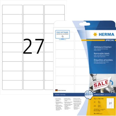 HERMA Special - Papier - matt - selbstklebend, entfernbarer Klebstoff - weiß - 63.5 x 29.6 mm 675 Etikett(en) (25 Bogen x 27) | ||||
