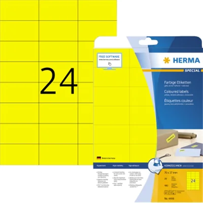 HERMA Special - Papier - matt - permanent selbstklebend - Gelb - 70 x 37 mm 480 Etikett(en) (20 Bogen x 24) | ||||
