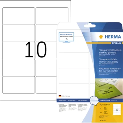 HERMA Selbstklebend - durchsichtig - 50.8 x 96 mm 250 Etikett(en) (25 Bogen x 10) | ||||