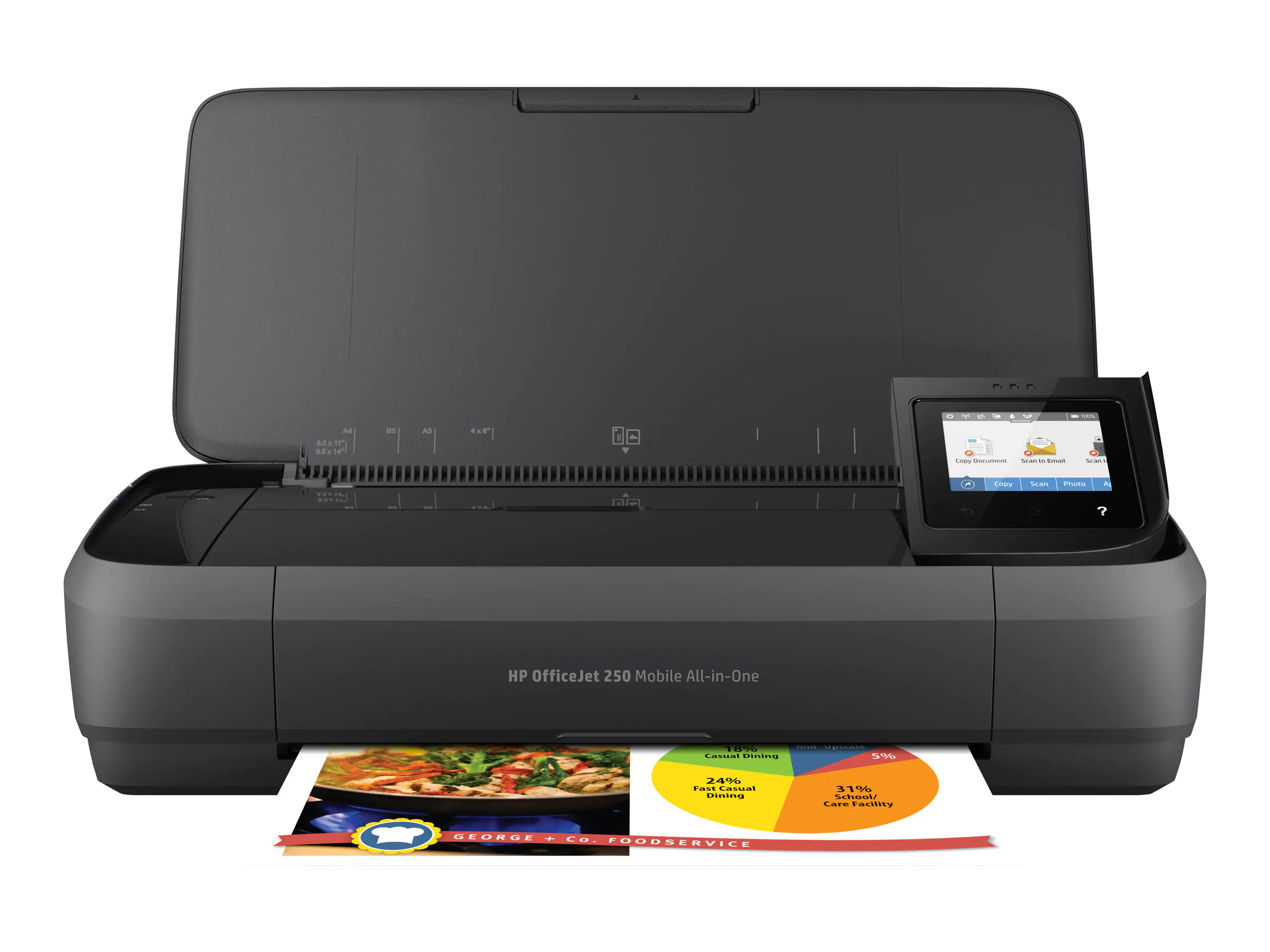 HP Officejet 250 Mobile All-in-One - Multifunktionsdrucker - Farbe - Tintenstrahl - Legal (216 x 356 mm) (Original) - A4/Legal (Medien) - bis zu 8 Seiten/Min. (Kopieren) - bis zu 10 Seiten/Min. (Drucken) - 50 Blatt - USB 2.0, USB-Host, Wi-Fi