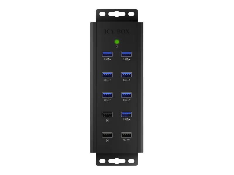 Der IB-HUB1703-QC3 ist speziell angepasst, um sich in Industrieumgebungen behaupten zu können. Das hochwertige Aluminium-Gehäuse hält so einiges aus und sorgt für eine effektive Wärmeabfuhr. Dank der Montagewinkel lässt er sich nahezu überall anbringen und nutzen. Neben dem hocheffizienten QC-3.0-Ladeanschluss sind zwei Schnell-Ladeanschlüsse (BC 1.2) sowie sieben weitere USB-3.0-Anschlüsse integriert.