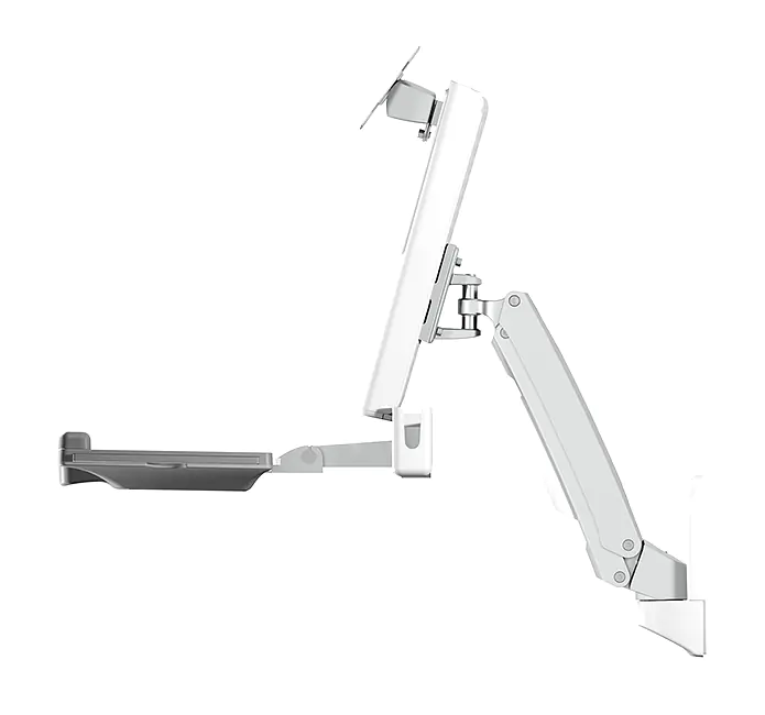 Die IB-MS600-W ist drehbar und der Arm kann samt Monitor in unterschiedlichen Winkeln geneigt werden, sogar eine 360° Drehung ist möglich. Wenn man etwas Platz sparen möchte, kann auch die Tastaturablage hochgeklappt werden.