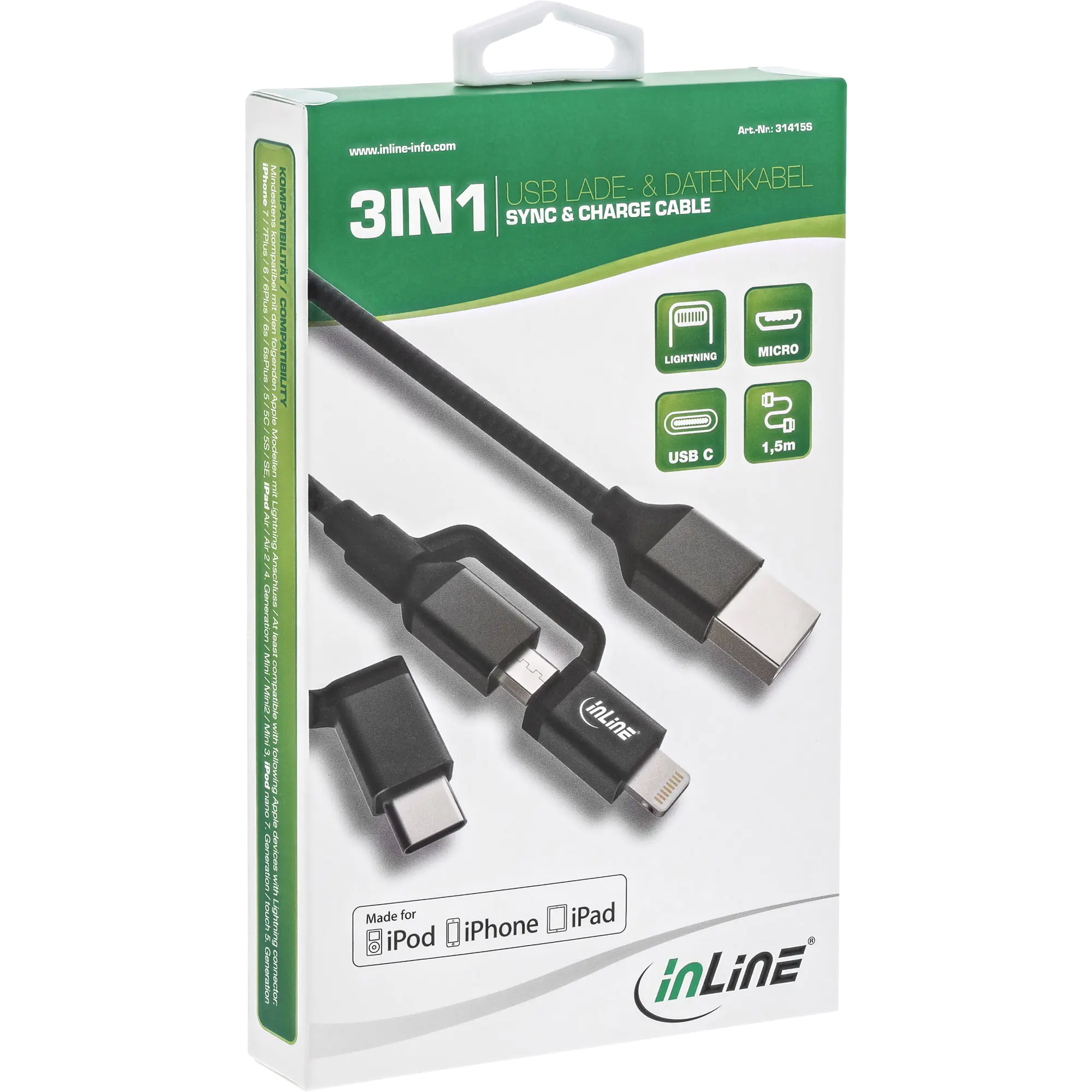 InLine 3-in-1 - USB-Kabel - USB (M) zu Micro-USB Typ B (M) - USB 2.0 - 1.5 m - Schwarz