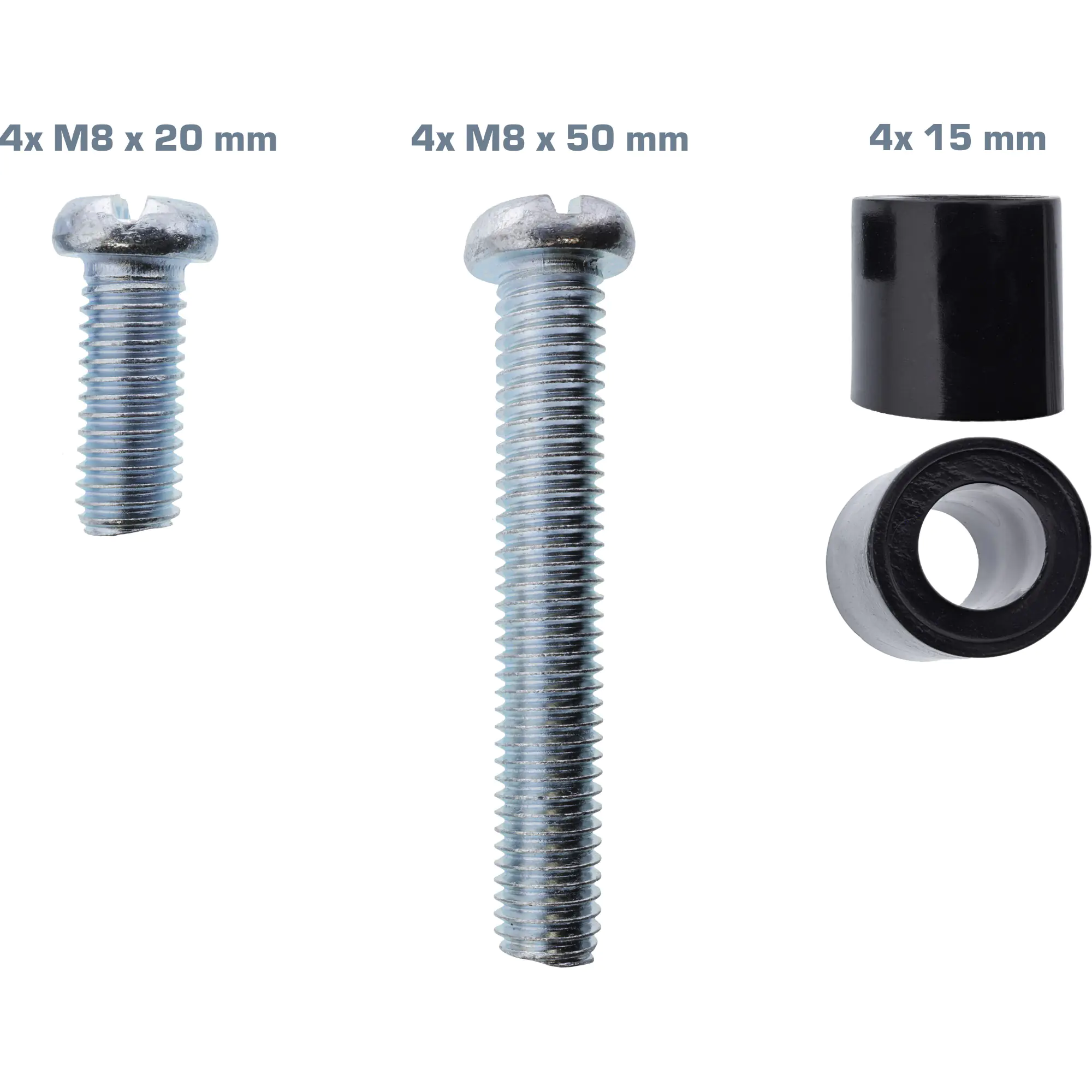 InLine 8er Schraubenset 4x M8x20mm - 4x M8x50mm und 4x 15mm Abstandhalter für Wandhalterung