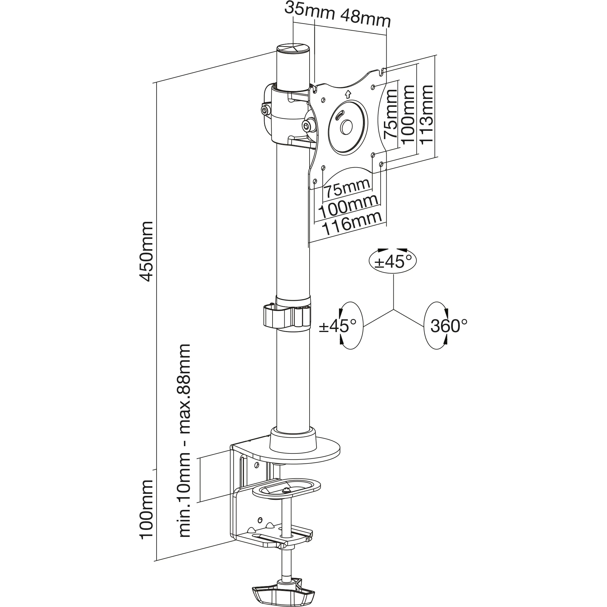 - Um +/-45° zu neigen, Display 360° drehbar