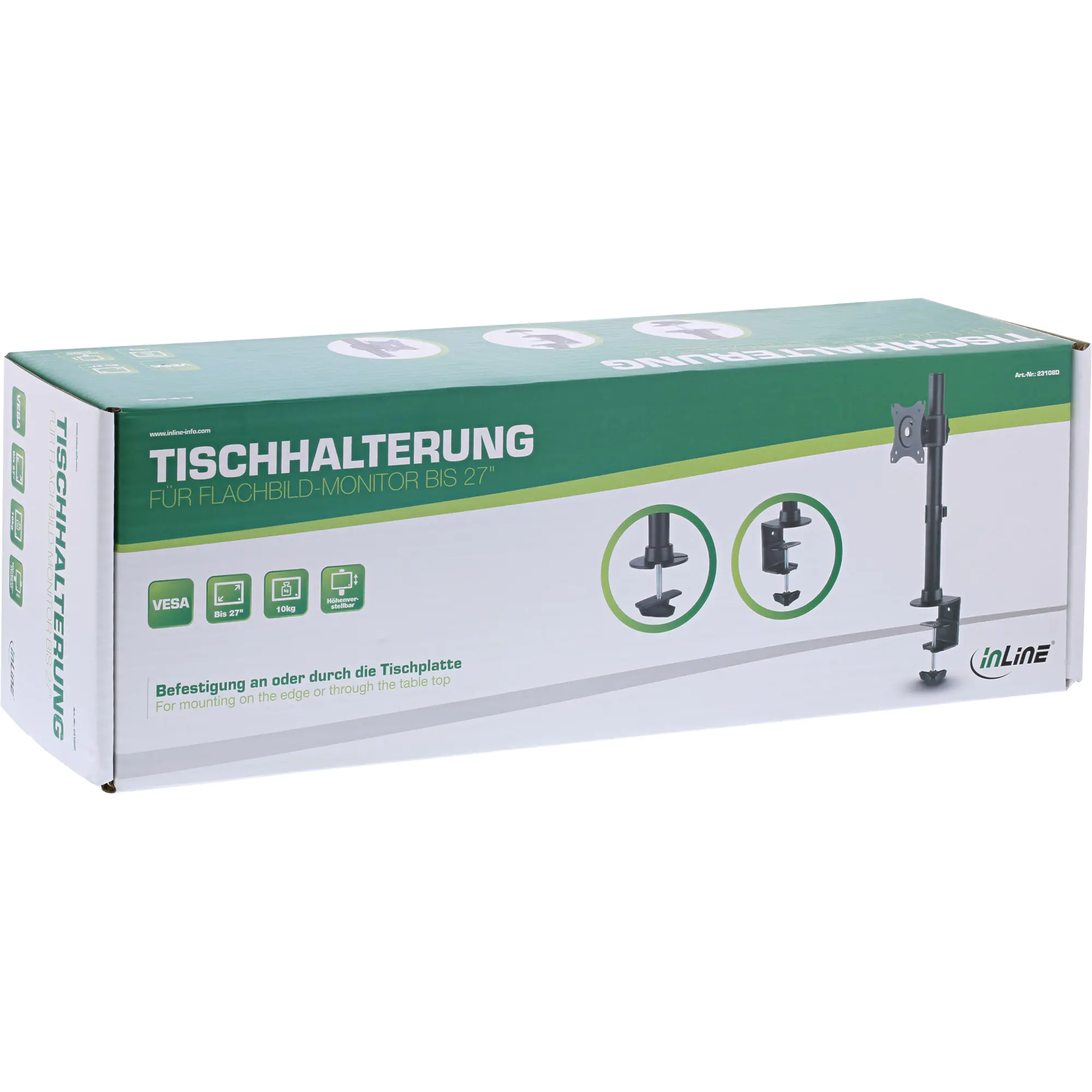 InLine Desk Bracket - Befestigungskit (Stange, Halter, VESA-Halterung) - für LCD-Display - Schwarz - Bildschirmgröße: 68.6 cm (27") - Klemmmontage, Tülle