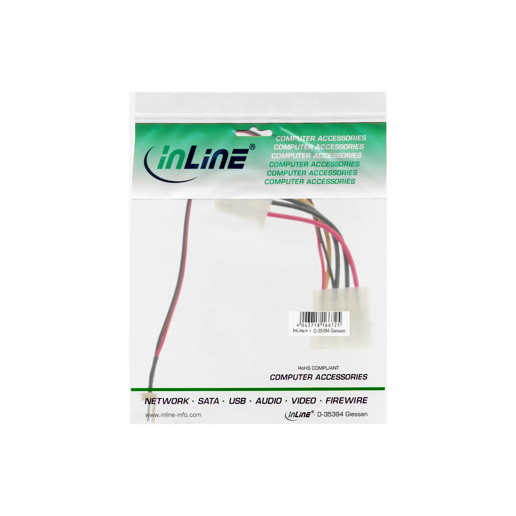 InLine - Netzsplitter für Lüfter - 3 PIN Internal Power, 4-Pin interner Netzanschluss (12 V) (M) zu 4-Pin interner Netzanschluss (12 V) (W) - 30 cm