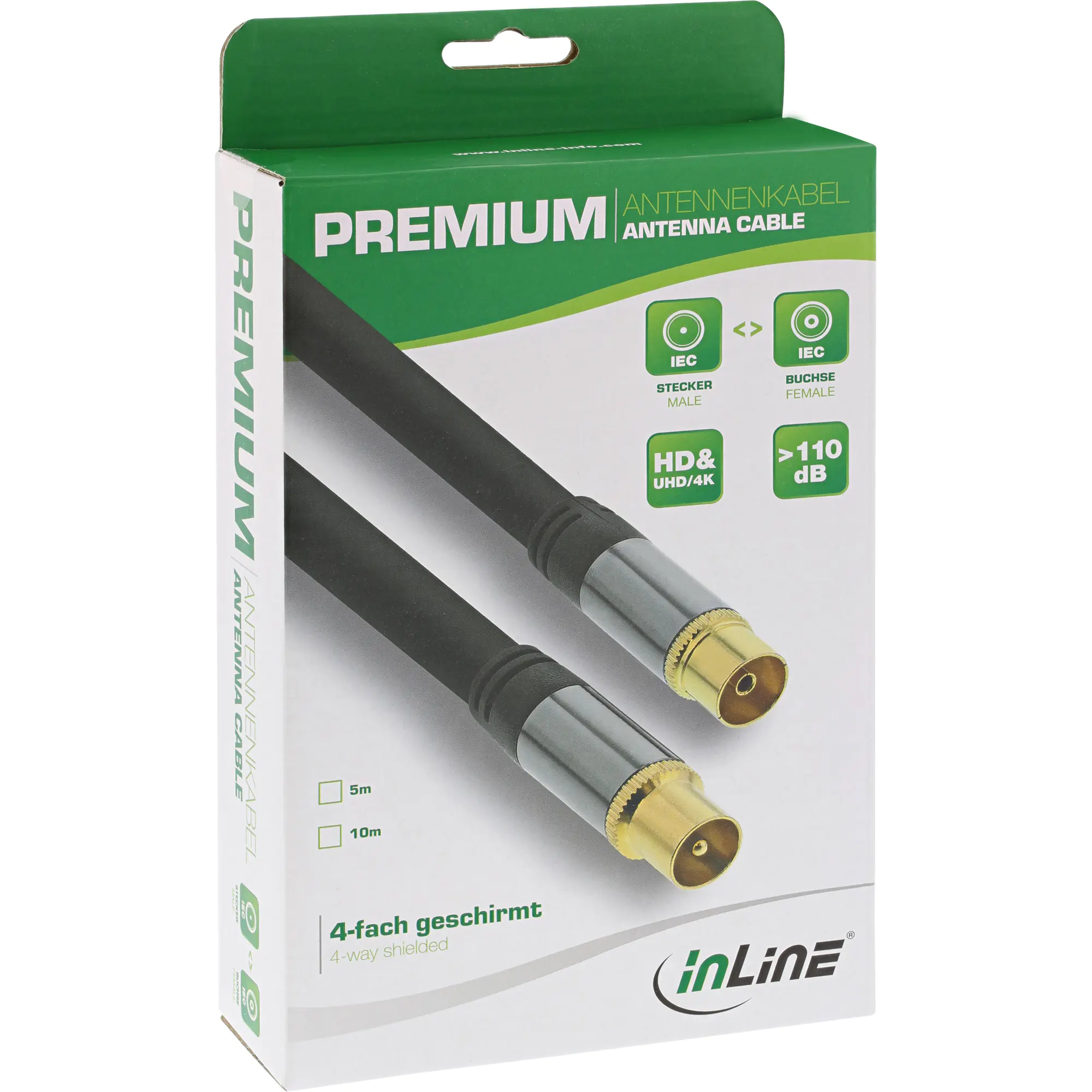 InLine Premium - Antennenkabel - IEC-Anschluss männlich zu IEC-Anschluss weiblich - 10 m - 4-lagige Abschirmung - 110 dB - Schwarz