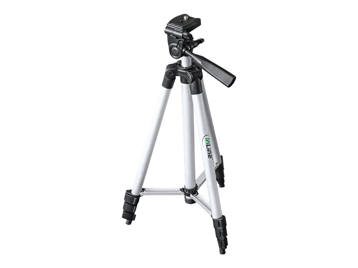 InLine Aluminiumstativ für Digital- und Videokameras. Ermöglicht das fixieren von Kameras in den Höhen von 36 bis 106 cm. Der stufenlos verstellbare Dreifuß mit integrierter Wasserwaage ermöglicht eine optimale Positionierung des Stativs. Der 3-Wege Kopf, lässt Sie Ihre Kamera in jede beliebige Richtung fixieren. Rutschfeste Füße bieten einen sicheren Halt. Inklusive Tragetasche.