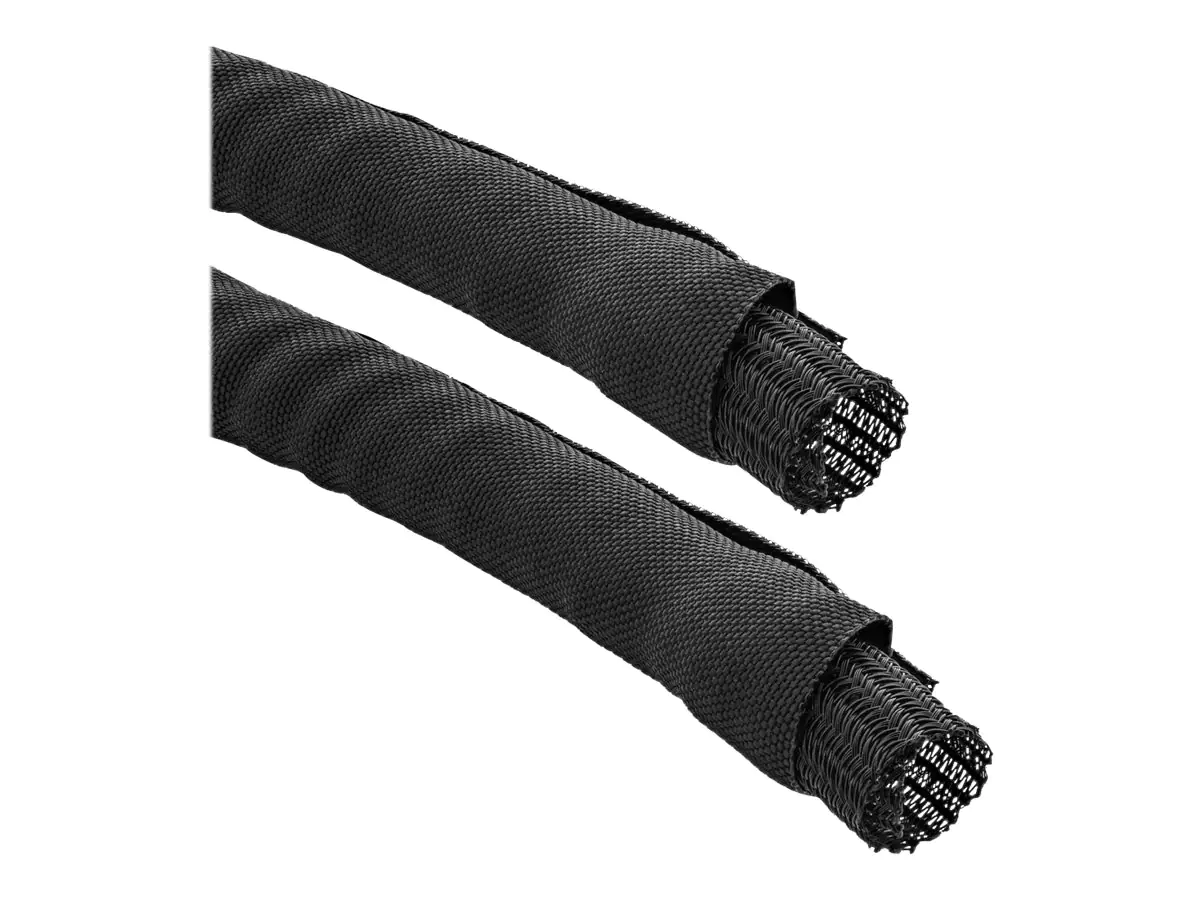 InLine Kabel Gewebeschlauch mit Polyestergeflechtmantel, selbstverschließend in schwarz. Die Kombination aus gewebtem Polypropylen (PP) als Mantel und einem Polyestergewebeschlauch innen, macht diesen Kabelkanal sehr leicht und einfach in der Anwendung. Der Vorteil des Kabelkanals liegt in seinem sehr geringen Gewicht, der hohen Flammwidrigkeit, hoher Abriebfestigkeit und guten Wärmedämmung. Je nach Anwendungsbedarf können diese 2 selbstverschließenden Kabelkanäle auch unabhängig voneinander genutzt werden, so verdoppeln Sie ganz einfach die Länge des Kabelkanals.