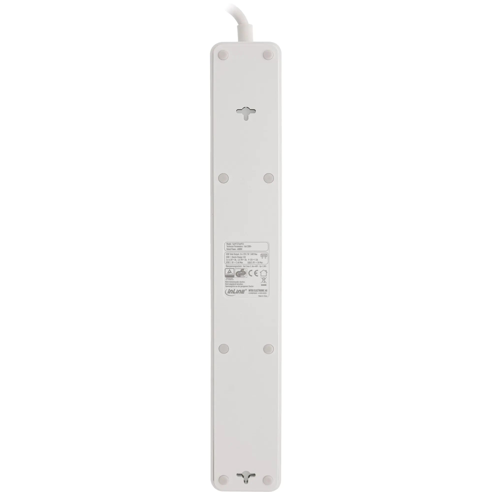 InLine - Steckdosenleiste - AC 220-250 V - 4000 Watt - Ausgangsanschlüsse: 5 (3 x USB Typ A, 5 x Strom Typ F) - 1.5 m Schnur - Deutschland - weiß