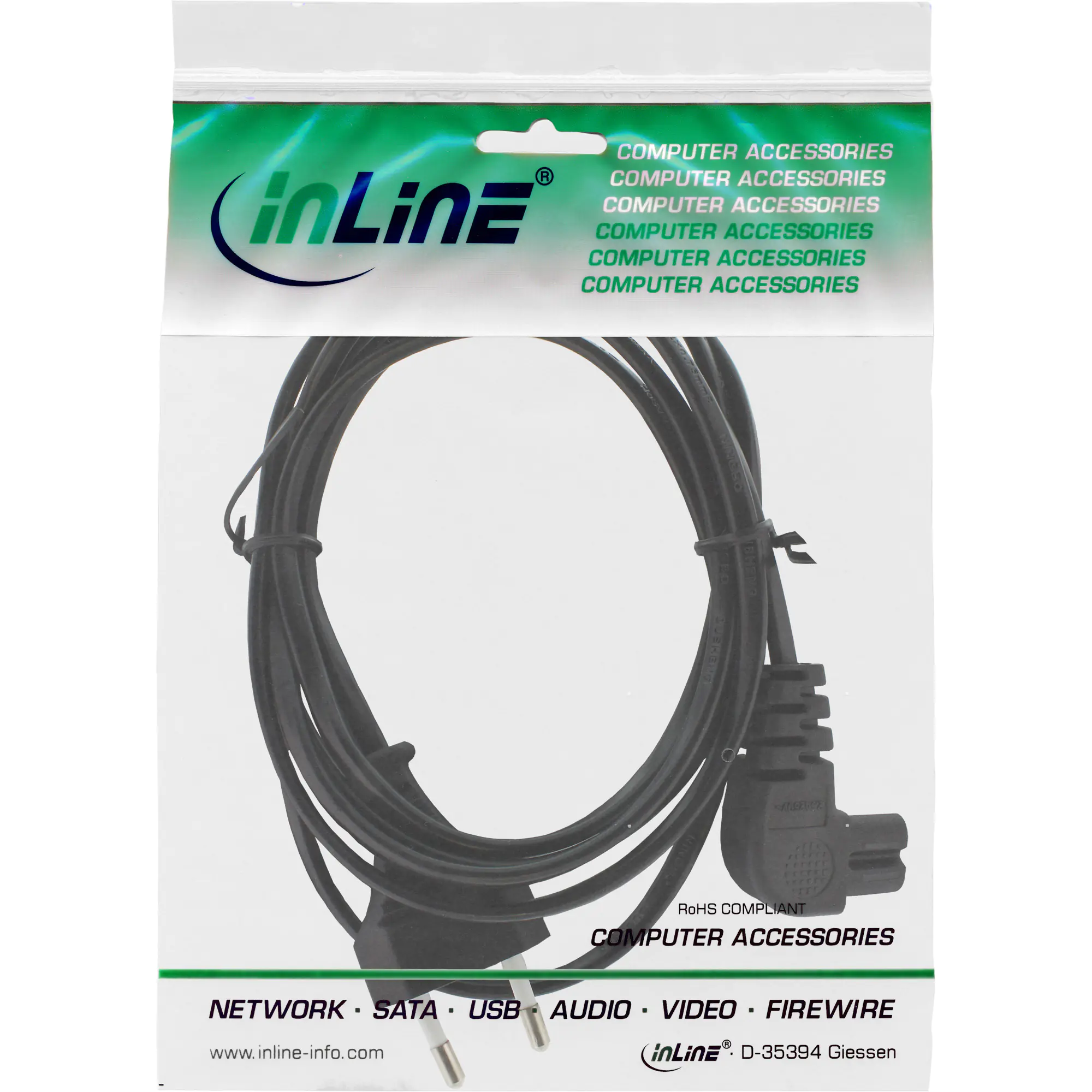 InLine - Stromkabel - Eurostecker (S) bis IEC 60320 C7 gewinkelt - 3 m - Schwarz