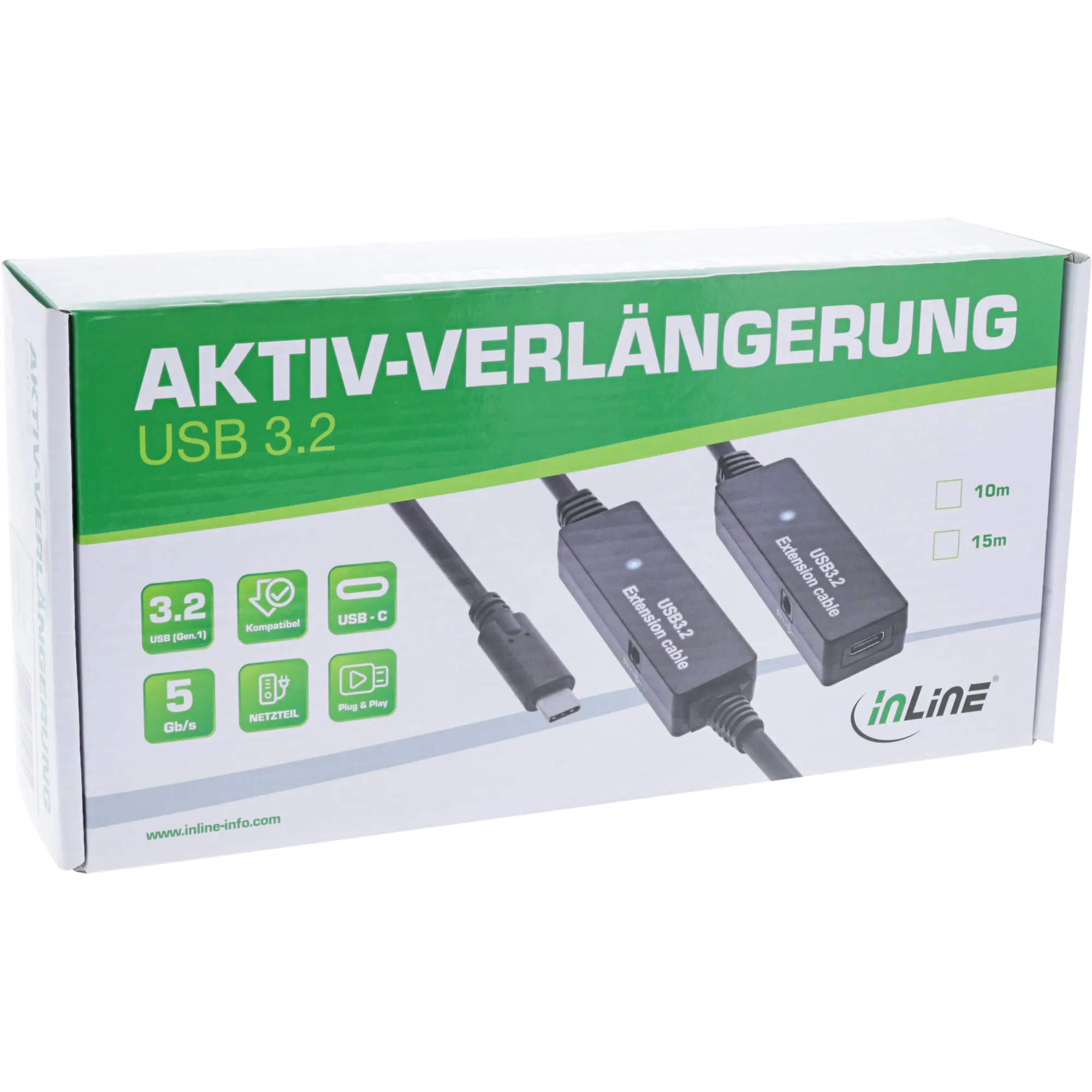 InLine USB 3.2 Gen.1 Aktiv-Verlängerung USB-C Stecker an Buchse 10m - Kabel - Digital/Daten