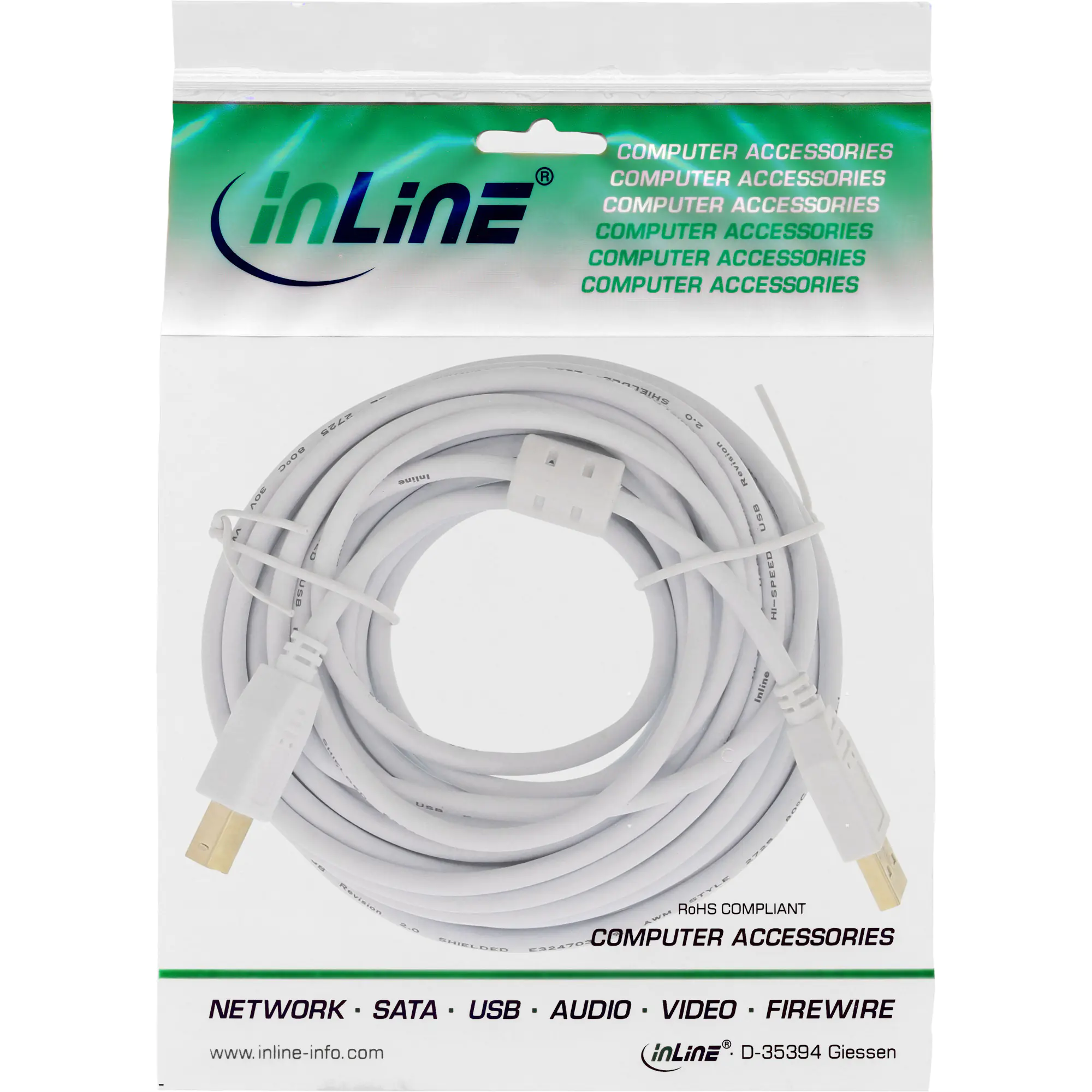 InLine - USB-Kabel - USB Typ B (M) zu USB (M) - USB 2.0 - 10 m - weiß