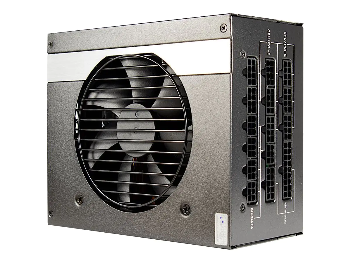 Im hochwertigen Netzteilgehäuse, das mit Aluminiumapplikationen versehen worden ist, sitzt der laufruhige, temperaturgeregelte 120 mm Lüfter, der zuverlässig das Innenleben des Netzteils kühlt.