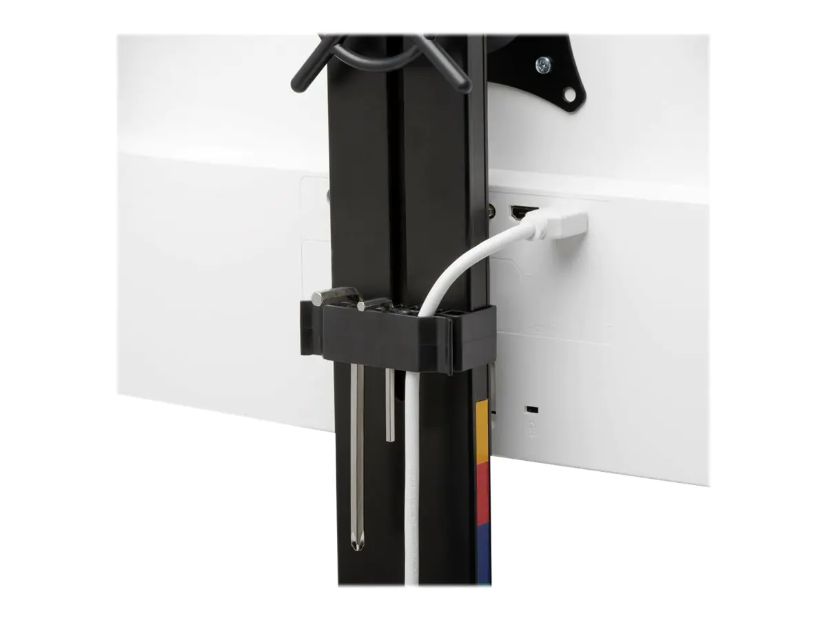 - Der griffige Einstellknopf ermöglicht eine schnelle und einfache Höheneinstellung (23,8 - 46,9 cm), das Neigen und Schwenken (+/- 10°), die Ausrichtung ins Quer- oder Hochformat (+/- 180°) und das Arretieren der Monitore. Die schnell abnehmbare VESA-Befestigungsplatte vereinfacht die Monitorinstallation.