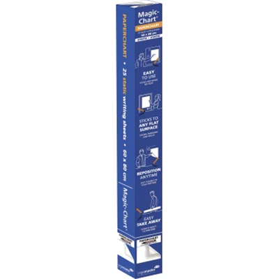 Mit Magic-Chart steht Ihnen überall und jederzeit eine Schreibunterlage zur Verfügung. Durch die elektrostatischen Eigenschaften haften die Folien auf allen glatten Oberflächen (Holz, Beton, Glas, Tapete) Einfach die Folie abrollen und an der Wand glattstreichen. Bei Bedarf lässt sich die Folie einfach abnehmen und an anderer Stelle wieder anbringen. Moderationskarten und Notizzettel haften ohne Hilfsmittel an der Folienoberfläche, einfach glattstreichen. Umweltfreundliches Material, komplett recyclingfähig. Folienrolle kann in der Verpackung in handelsüberliche Flipchart-Blockhalter eingehängt werden. Beschreibbar mit Legamaster-Boardmarkern und edding- Permanentmarkern. In umweltfreundlichen Verfahren produziert.