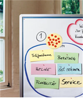 Ergänzt wird das Sortiment durch praktische Präsentationslösungen wie Flipcharts, die das Festhalten von Ideen in Echtzeit ermöglichen, und Moderationswände, die ideal für Brainstorming und Workshops sind.