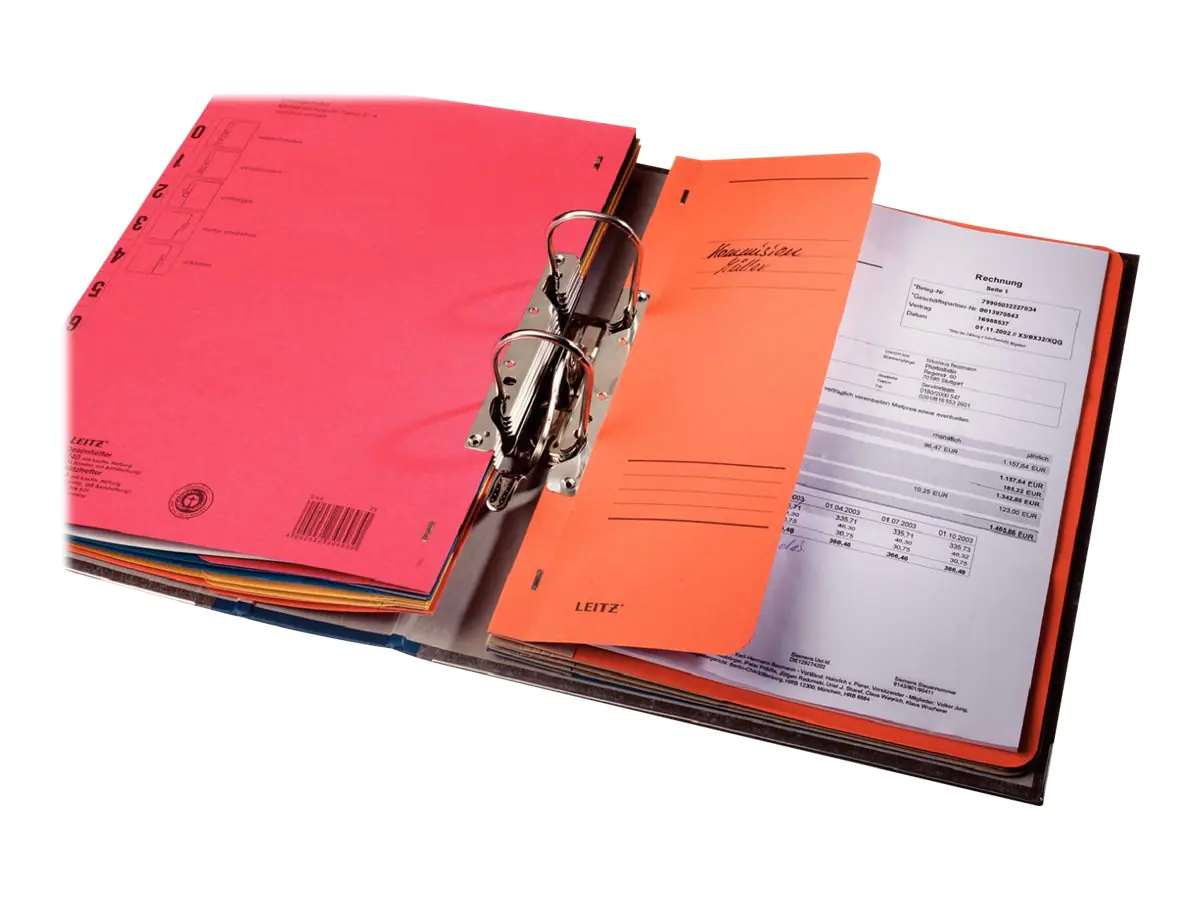 Farbiger Schlitzhefter mit Mechanik zur Ablage von gelochten Unterlagen. Spezielle Schlitze ermöglichen ein schnelles Einhaken im Ordner, ohne dass die Mechanik geöffnet werden muss.