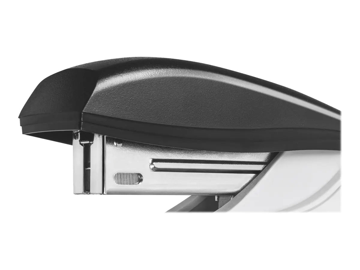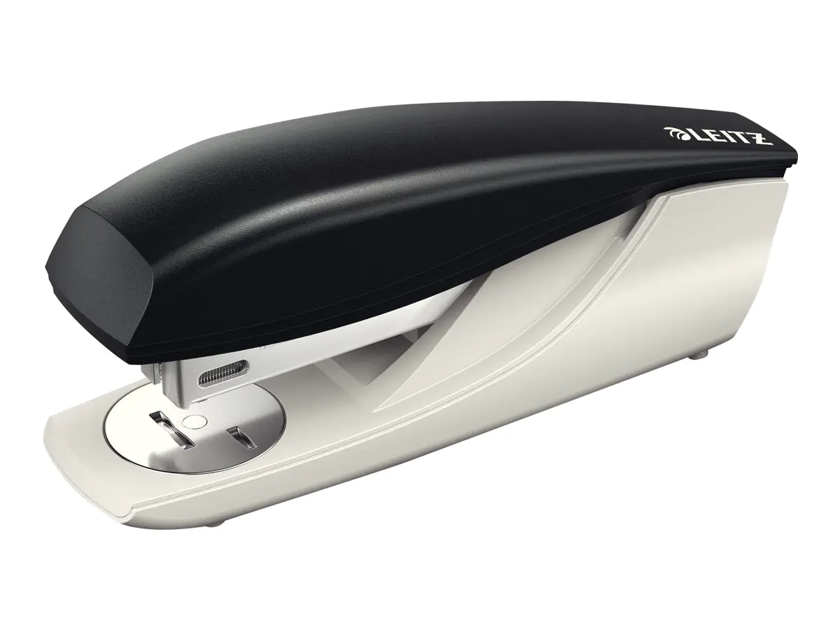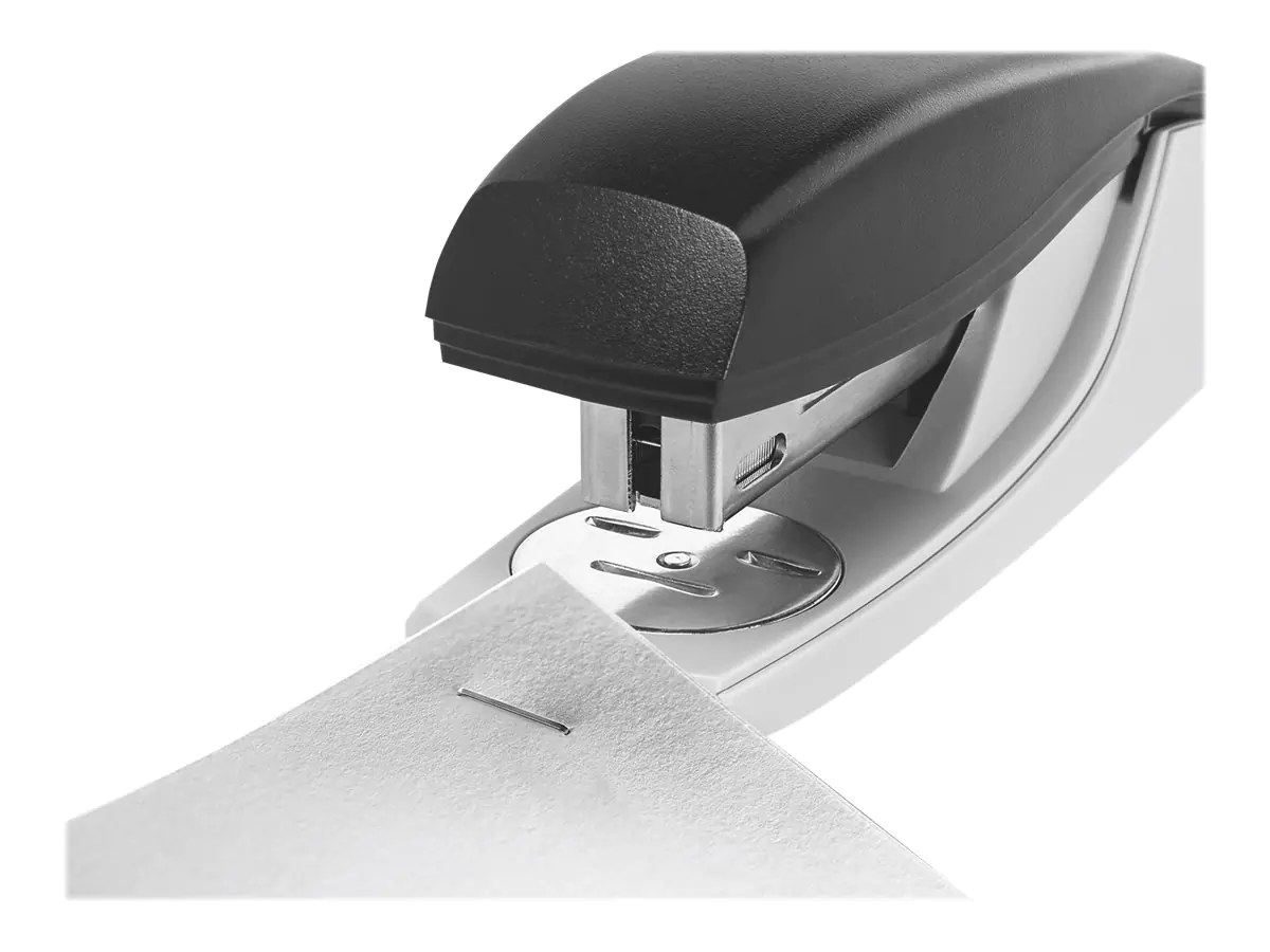 Ergonomische Daumenkuhle. Auch ideal für die Handheftung. Mit praktischem Gleitamboss für schnellen Wechsel zwischen offener und geschlossener Heftung. Direct Impact Technology (DIT) für perfektes und problemloses Heften. 3 Jahre Garantie nur bei Verwendung von Leitz Heftklammern.