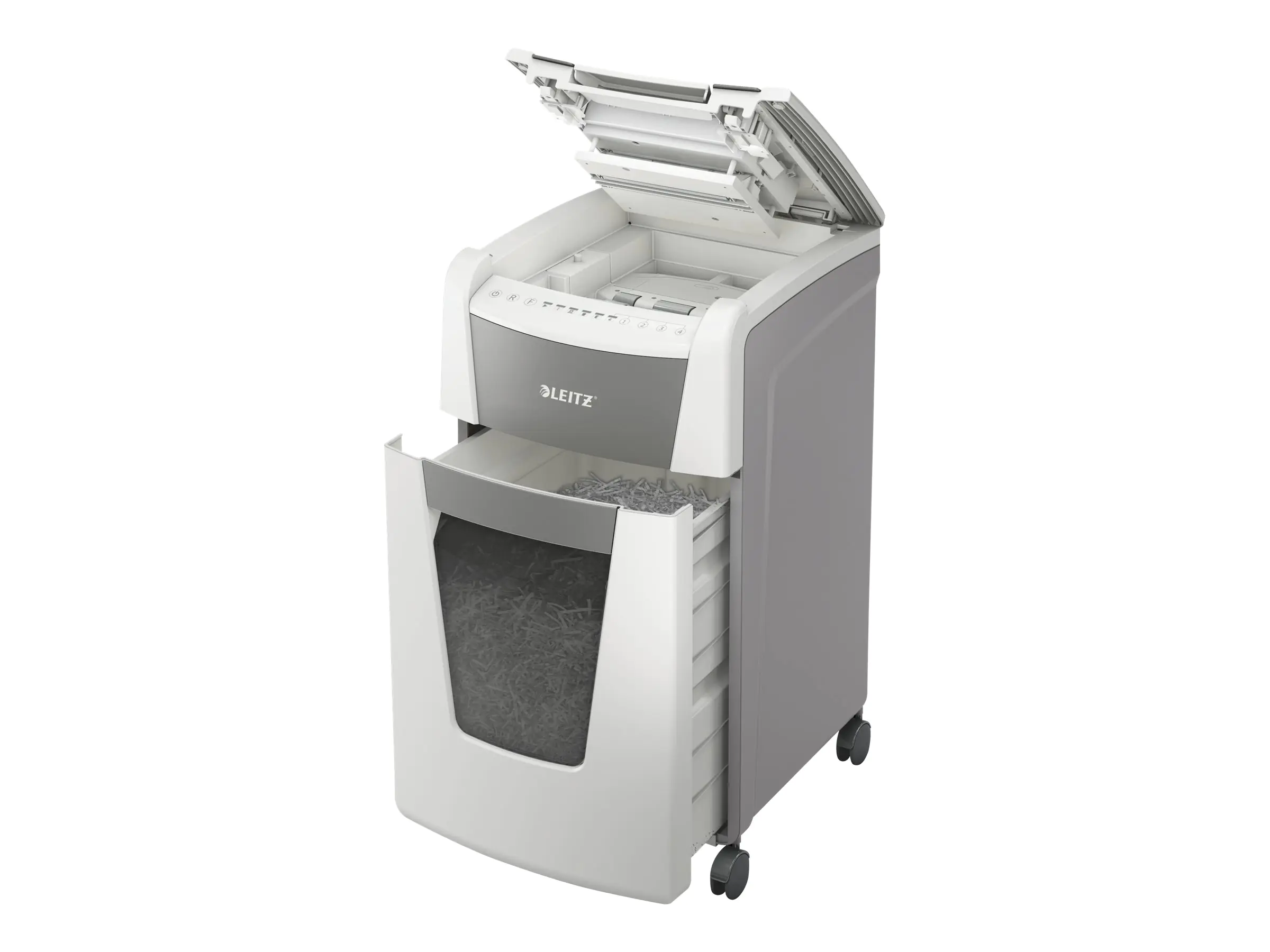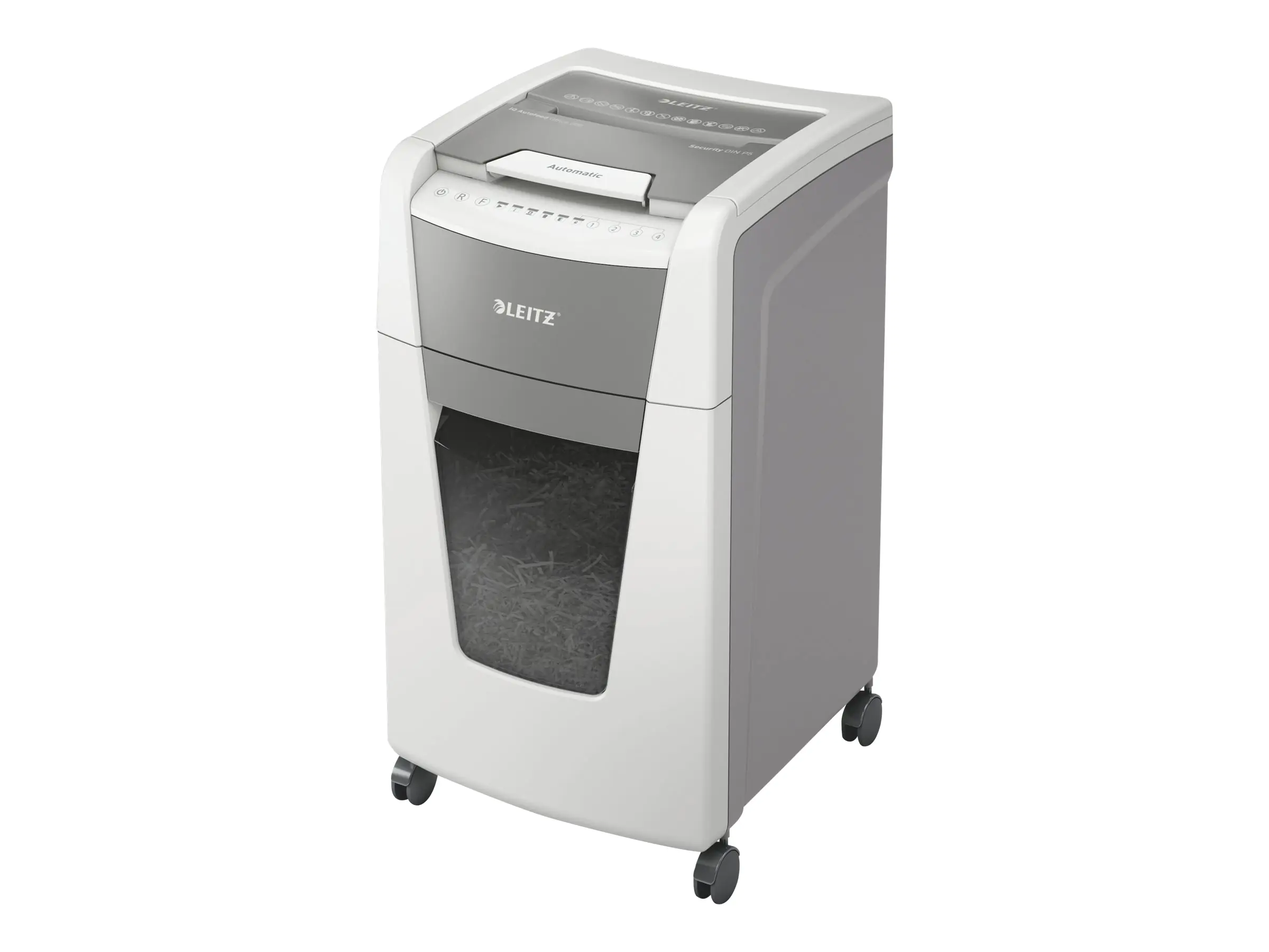 Vollautomatischer Aktenvernichter von Leitz mit einzigartiger Funktion für sauberes Entleeren des Abfallbehälters. So intelligent, dass er komplett selbständig arbeitet. Legen Sie einfach Ihren Papierstapel (inkl. Heft- und Büroklammern) ein, schließen Sie den Deckel und beginnen Sie Ihren Tag. Ideal für den täglichen Gebrauch in jeder Büroumgebung. Hohe Sicherheit und hervorragende Leistung mit diesem papierstaufreien, leisen und lang laufenden Autofeed-Aktenvernichter. Mit integrierter Anti-Papierstau-Technologie - stoppt automatisch und führt das Papier zurück, wenn zu viel eingelegt worden ist. Einfach zu entleerender, herausziehbarer Abfallbehälter mit Infrarot-Sensoranzeige bei 80 % vollem Abfallbehälter, einzigartige Funktion für sauberes Entleeren des Abfallbehälters (Schneidewellen laufen nach jedem Schredder-Vorgang kurz rückwärts), um zu vermeiden, dass beim Herausziehen Papierschnipsel hinter den Behälter fallen. Kontinuierliche Laufzeit von 60 Minuten, sodass die maximale Blattanzahl der Papierkammer in einem Durchgang geschreddert werden kann. Der energiesparende ECO-Schlafmodus wird nach 3 Minuten Nichtbenutzung aktiviert. Einfach und intuitiv zu bedienen dank Touch-Control. Schreddern unterstützt die Einhaltung der DSGVO. 2 + 1 Jahre Garantie bei Produktregistrierung.