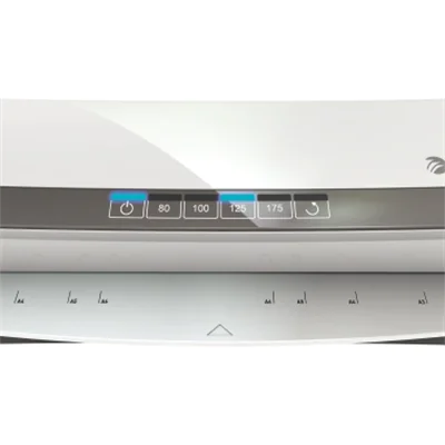 Ideal für die häufige Nutzung im Büro oder in der Schule. Einfache Bedienung über das Touch Panel mit nur einem Fingertipp. Schnelles Laminieren bei jeder Folienstärke. Integrierte Ablage am Ein- und Ausgang des Geräts. Niedriger Energieverbrauch, automatische Abschaltung nach 30 Minuten, wenn nicht im Gebrauch. Benötigt ca. 40 Sekunden für das Laminieren einer 80 mic A4 Folie. LED und akustisches Signal zeigen an, wenn das Gerät betriebsbereit ist.