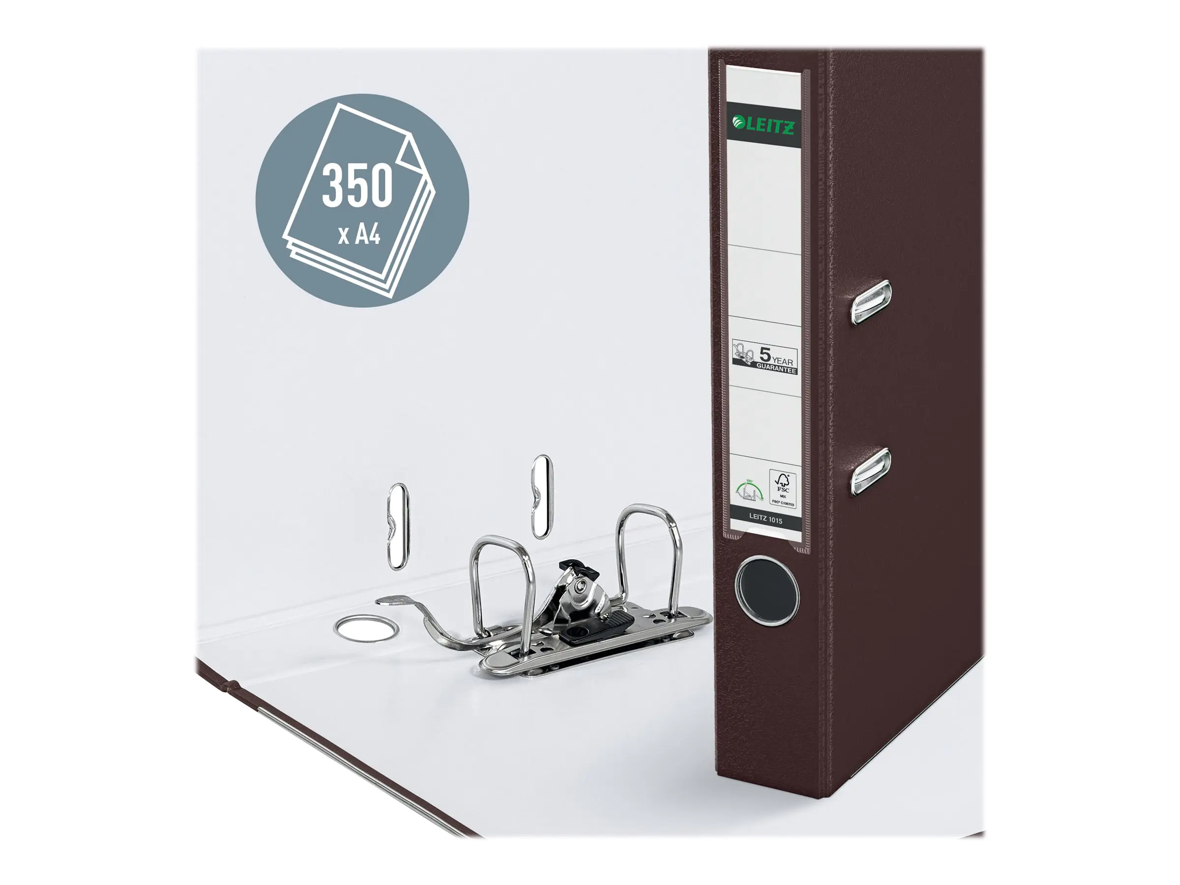 Mit patentierter 180°-Präzisionshebelmechanik. 50% weitere Mechaniköffnung für schnelleres und komfortableres Arbeiten. Ablegen auch auf der linken Seite möglich. Sichttasche am Rücken für auswechselbares Kartonrückenschild. 5 Jahre Garantie auf die Mechanik.