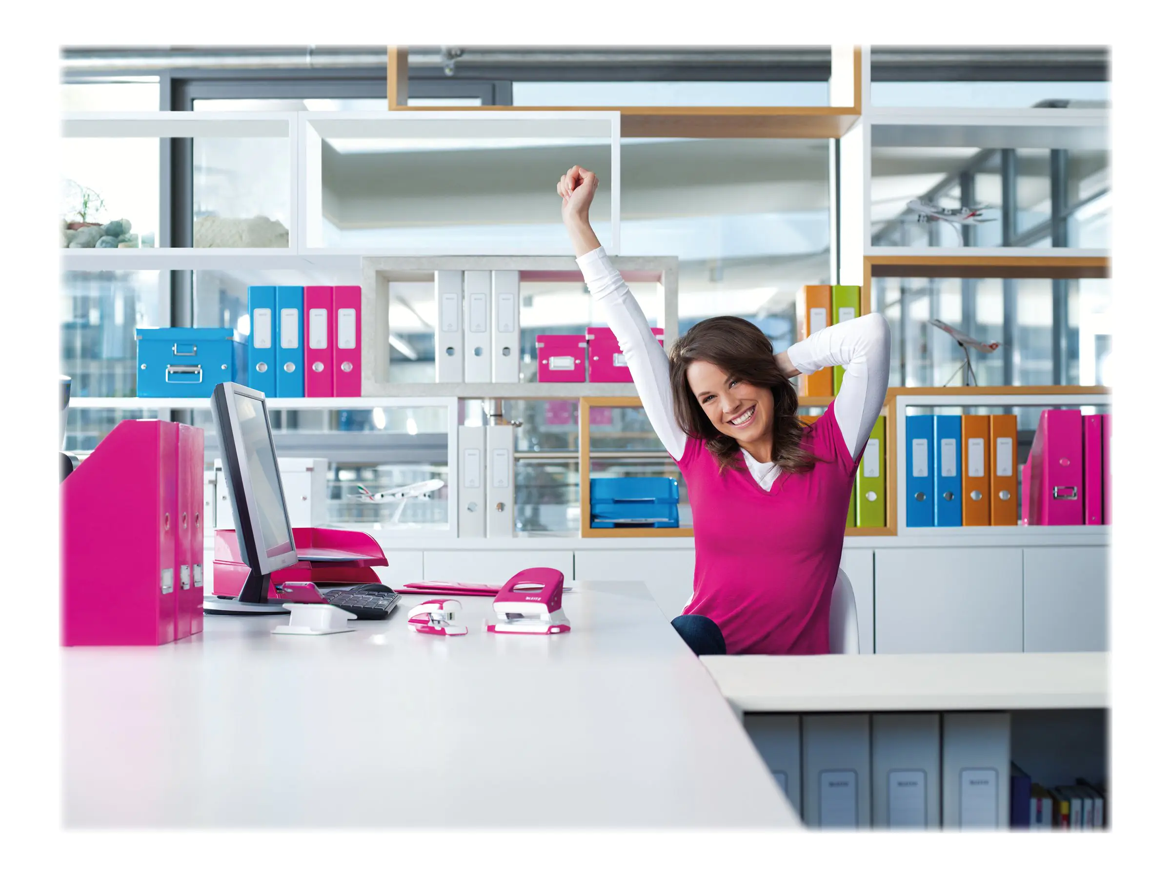 Schreibtischorganisation: Leitz bietet eine breite Palette an cleveren Helfern für einen aufgeräumten Schreibtisch. Von Briefablagen und Stiftköchern bis hin zu modernen Ablagesystemen – die Produkte von Leitz überzeugen durch ihre Funktionalität, Langlebigkeit und ihr klares, elegantes Design, das sich nahtlos in jede Büroumgebung einfügt.