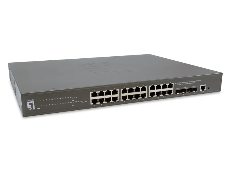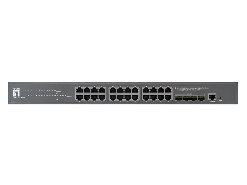 LevelOne GTP-2871 - Switch - L3 Lite - managed - 24 x 10/100/1000 (PoE+) + 4 x 10 Gigabit SFP+ - Desktop, an Rack montierbar - PoE+ (400 W)