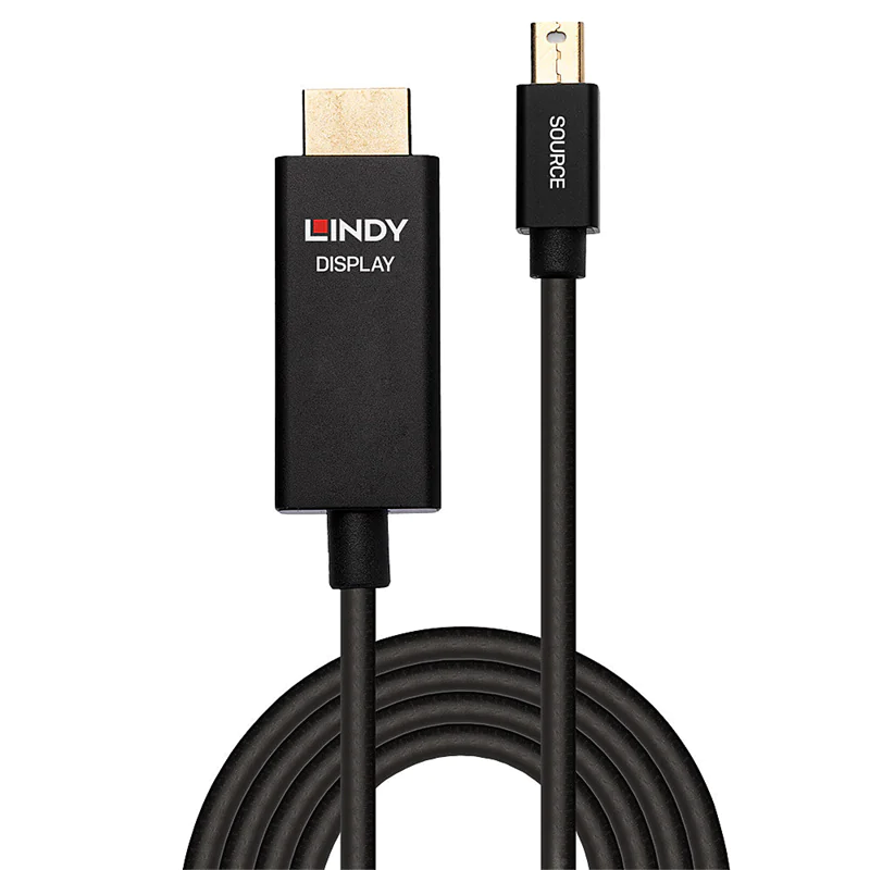 Lindy - Adapterkabel - Mini DisplayPort männlich zu HDMI männlich - 3 m - abgeschirmt - Schwarz - rund, 4K Unterstützung, aktiver Chip