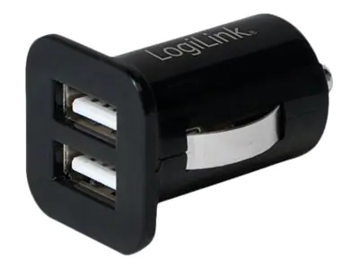LogiLink - Auto-Netzteil - 10.5 Watt - 2.1 A - 2 Ausgabeanschlussstellen (2 x USB) - auf Kabel: Micro-USB, USB-C - Schwarz